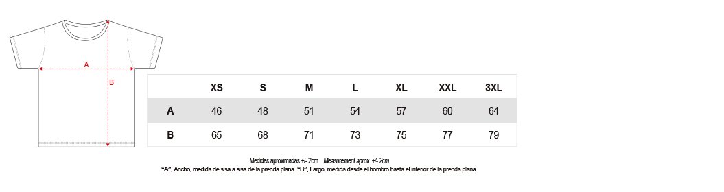 Tallas XS – S – M – L – XL – XXL – 3XL