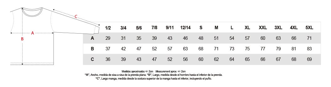 Tallas niño 1/2 – 3/4 – 5/6 – 7/8 – 9/11 – 12/14