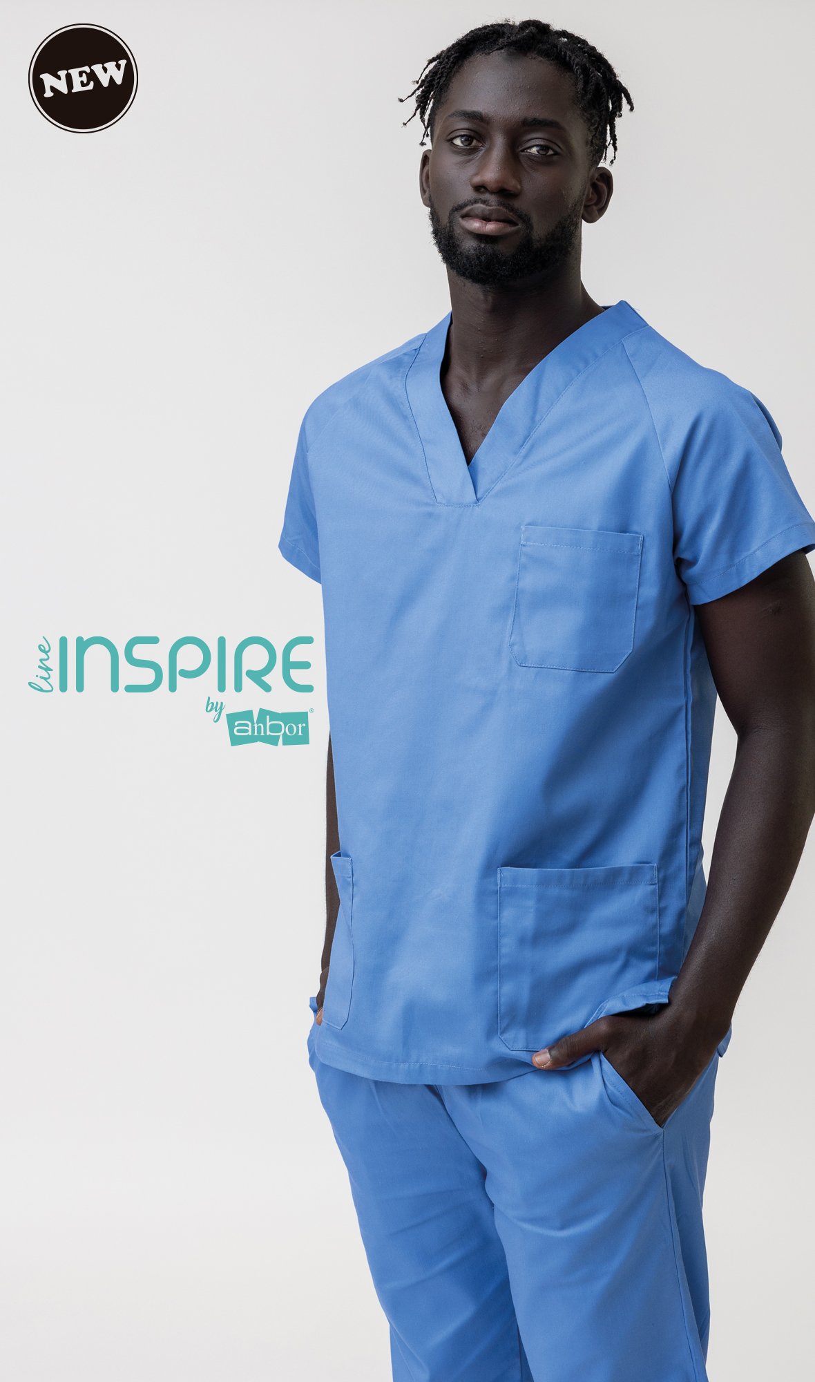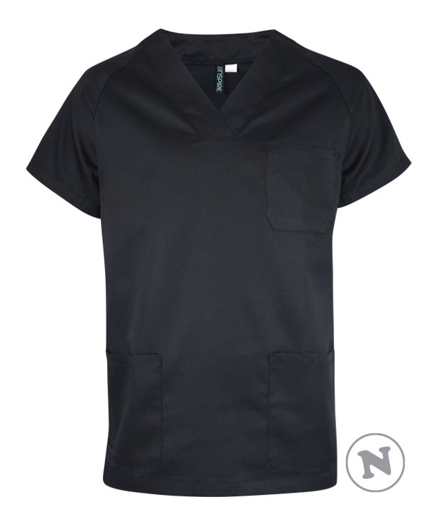 Casaca sanitaria unisex de cuello pico y manga corta.
