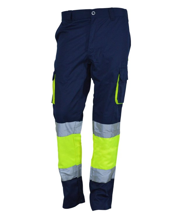 2 bandas reflectantes cosidas en el bajo de las piernas
