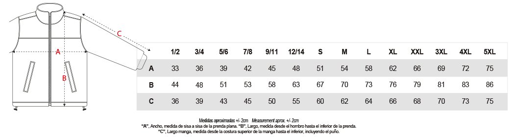 Tallas adulto S – M – L – XL – XXL – 3XL* – 4XL* – 5XL*