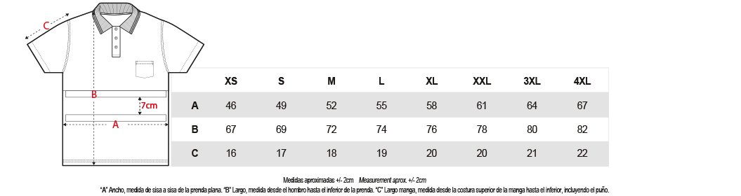 Tallas S – M – L – XL – XXL – 3XL – 4XL