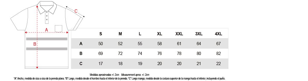 Tallas S – M – L – XL – XXL – 3XL – 4XL
