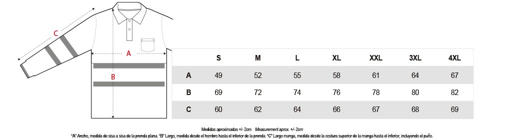 Tallas S – M – L – XL – XXL – 3XL – 4XL