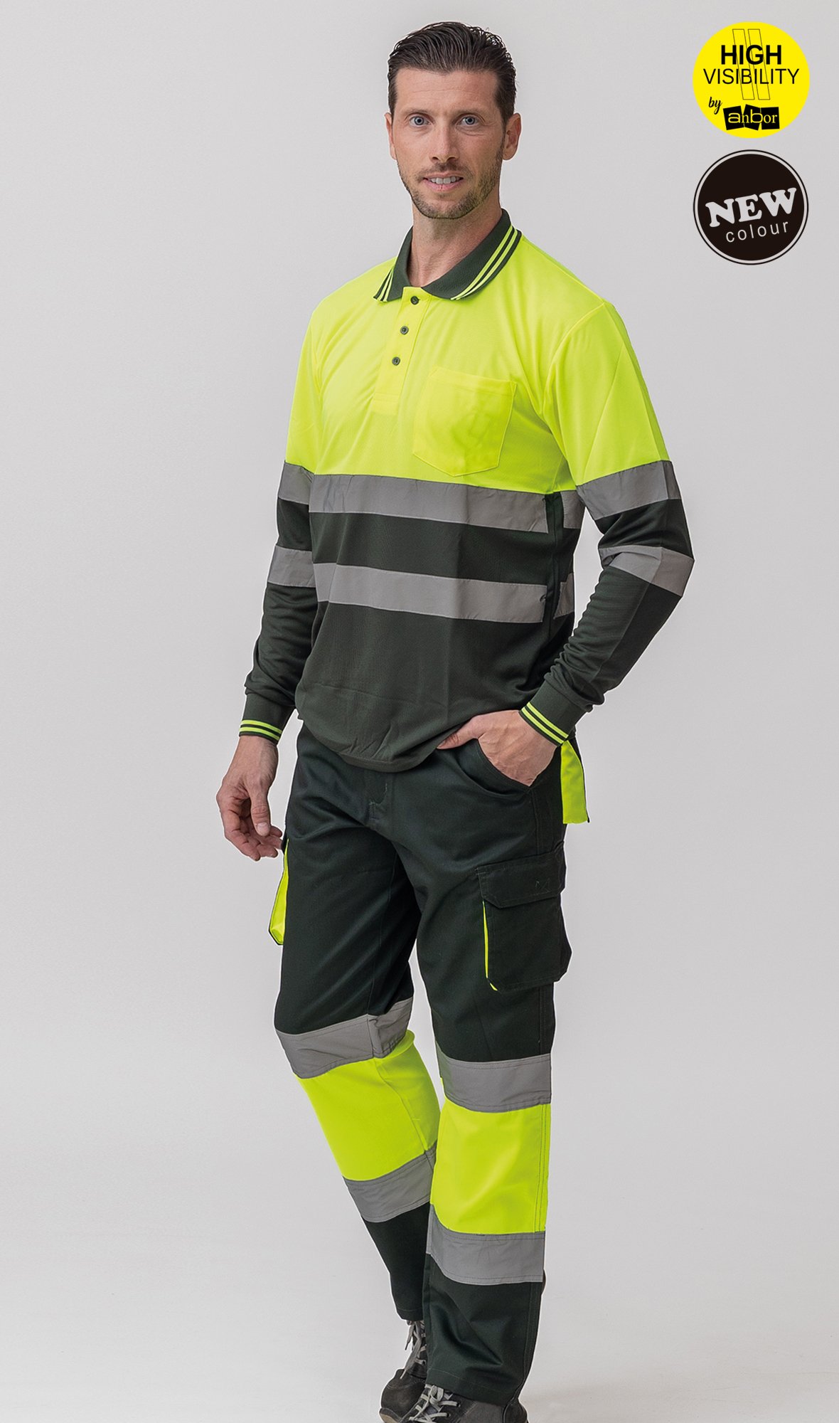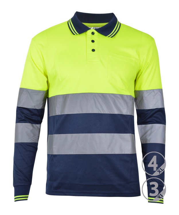 2 bandas reflectantes cosidas en torso y mangas de 5 cm