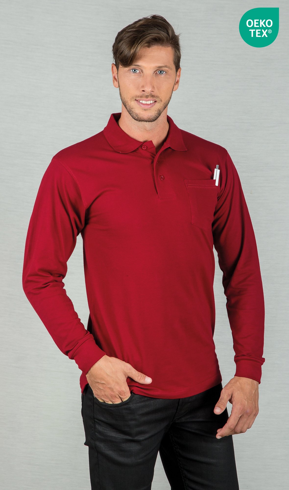 Polo manga larga con bolsillo