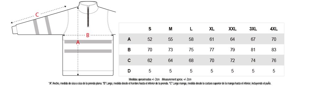 Tallas S – M – L – XL – XXL – 3XL – 4XL