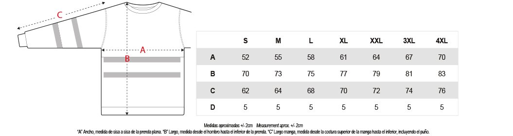 Tallas S – M – L – XL – XXL – 3XL – 4XL